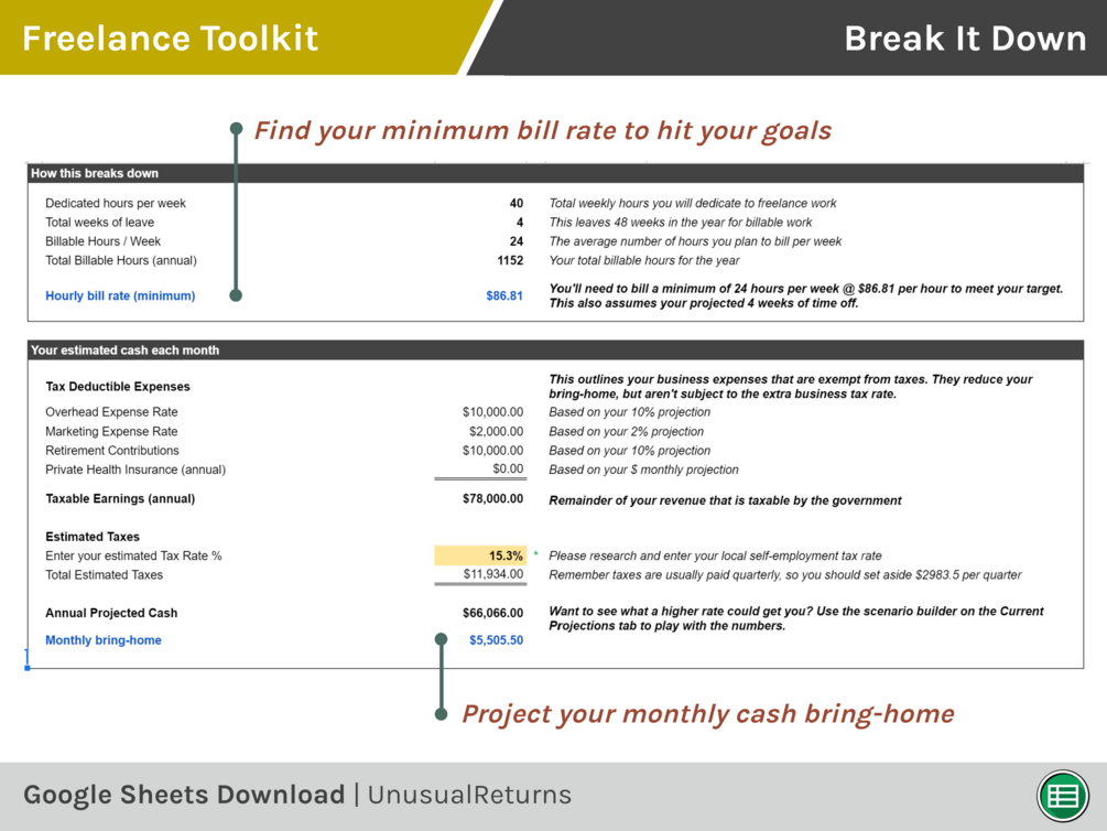 Data plays a critical role in determining your freelance rates. The toolkit uses real data to inform your rate decisions and help you reach your financial goals.